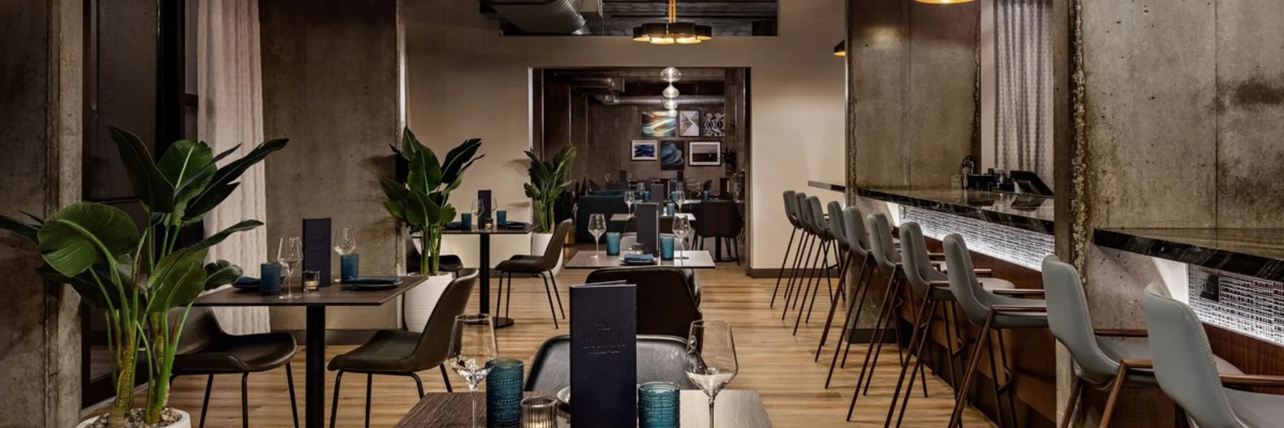Our restaurant and bar feature an American sea fare and a seasonally inspired cocktail menu, ensuring a fresh experience for every visit. Enjoy ample natural light through floor-to-ceiling windows in our warm, inviting space. Located at The Loom Hotel in the heart of Pontiac Mills, guests can explore the preserved heritage of our interiors and enjoy curated menus crafted to perfection. For families dining with us, a thoughtfully prepared kids' menu ensures even our youngest guests can enjoy a delicious meal at The Brook Kitchen + Bar.